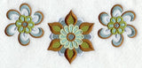 This trio design, inspired by Asian and Indian flowers, is perfect for shirt fronts. Or, repeat it as a scalloped border on linens!