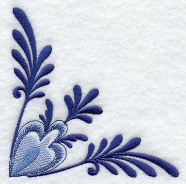 An elegant corner done in the artistic Delft Blue style. Beautiful on table linens, pillows, and lightweight kitchen towels.