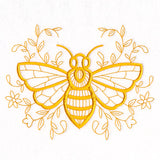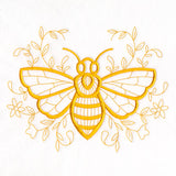Inspired by the original doodle style, this machine embroidery design features a honeybee resting in front of delicate flowers and filigree.
