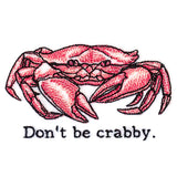 Lighten up the mood with this humorous crab! Create fun tea towels, T-shirts, pillows, and more in a pinch. This machine embroidery design contains sheer stitching and open areas; embroider on light-colored fabrics for best results.
