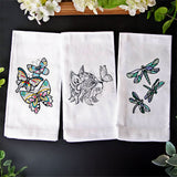 Texture and sweetness come alive with this kitten and butterfly pair! Stitch this machine embroidery design on tea towels, aprons, pillows, and more. Your fabric shows through open areas.