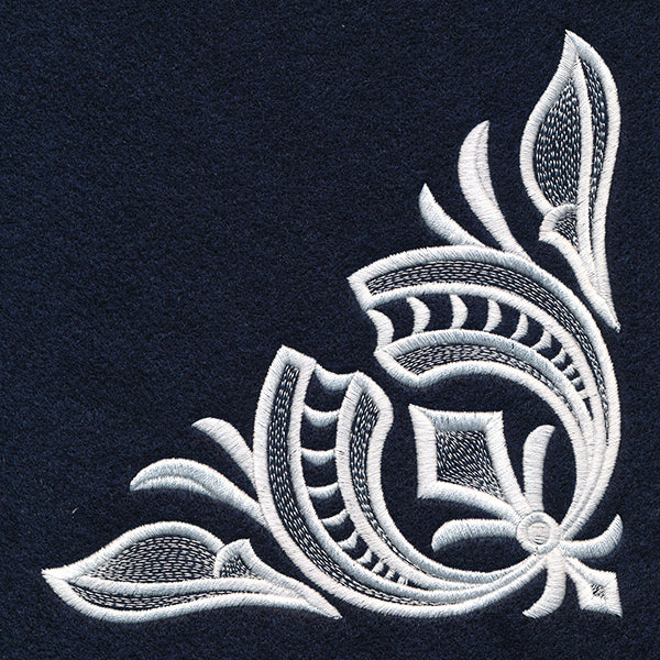 Elevate your embroidery with this elegant corner. Featuring graceful curves and flourishes, this design will add a sophisticated touch to pillows, table runners, and other garments.