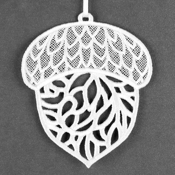 Fall is here and it's time to start decorating! Either hang this acorn from your window for a picturesque moment, or attach it to gift bags and more as a special detail. Project instructions will show you how to stitch freestanding lace.