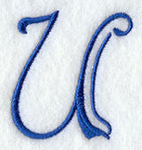 Elegant swirls and flowing double lines make this letter classic, formal, and beautiful. It's ideal for monogramming towels, pillow shams, aprons, and more. Project instructions give tips and ideas for monogramming.