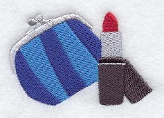 A design of a coin purse and lipstick, coordinates well with Funky Shoe Trio and Funky Purse & Shoe Feature.
