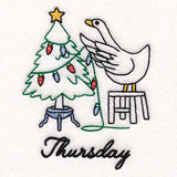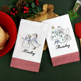 - Combine with the other days-of-the-week Christmas geese for a complete set of tea towels, or leave off the text to make aprons, table linens, and more.