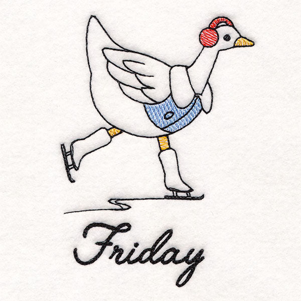 Inspired by classic geese art from the 90's, this goose is ice skating on Friday!