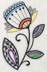 A modern Blackwork flower design pops with color. Add beautiful style to shirts, towels, tote bags, quilts, and more!