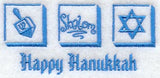 A dreidel (dreidl), star of David, and the word 'Shalom' are featured in this Hanukkah card design. Sew on fabric and incorporate into a holiday card!
