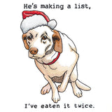 Even he can't be on the naughty list for too long! Create humorous tea towels, pillows, T-shirts, and more. This machine embroidery design contains sheer stitching and open areas; embroider on solid-colored fabrics for best results.