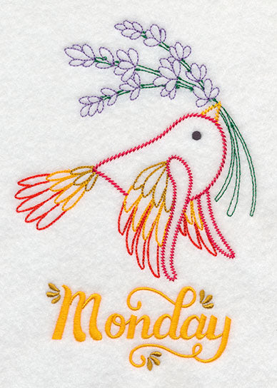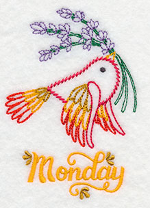 Add a dash of flavor and color to kitchen towels with this design! A sweet little bird, in a quick-stitching vintage style, carries a sprig of lavender.