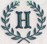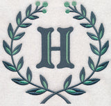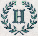 A letter, framed in graceful laurel. Monogram totes, pillows, towels, and more with this design!