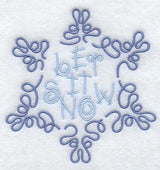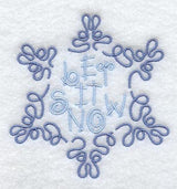 Curls and swirls delineate an ornate snowflake to convey wishes of a white Christmas with a ‘Let It Snow’ message.