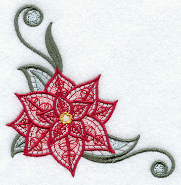 Decorate for Christmas with beautifully intricate poinsettias! This design is not freestanding lace; it can be stitched directly onto fabric.