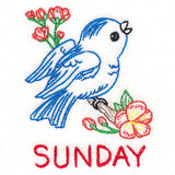Drawn in a hand-stitched style, this days-of-the-week bird is a cheerful addition to your projects. Create a sweet tea towel for your Sunday, or remove the text by skipping the last color stop and stitch this machine embroidery design onto curtains, table linens, dresses, and more.