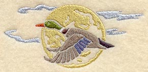 This design, in stencil style, features a mallard flying through the sky; perfect for cabins and cottages, Northwoods décor, outdoorsy projects and much more!