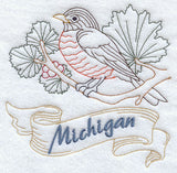Stitch this bird design all in red for a traditional look, or use multiple colors as shown for a colorful effect. Wonderful on tea towels, totes, t-shirts, quilts, wall hangings, and more!