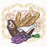 Create eye-catching decor using this scene featuring a baguettes in a basket!