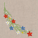 Celebrate in stitched style with this festive floral design! Twisting greenery is accented with bold red, white, and blue flowers and tiny golden stars—perfect for adding a dash of patriotic charm to T-shirts, table runners, towels, and more. Whether you're stitching for the Fourth of July, Memorial Day, or simply love Americana flair, this delicate yet vibrant motif is sure to shine.