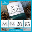 Five friendly animal faces peek into view in this delightful design pack full of personality and charm. The light stitch style and expressive details make these designs fun to use on a wide range of projects. Ideal for towels, tote bags, kids’ items, and gift stitching that’s sure to bring smiles.