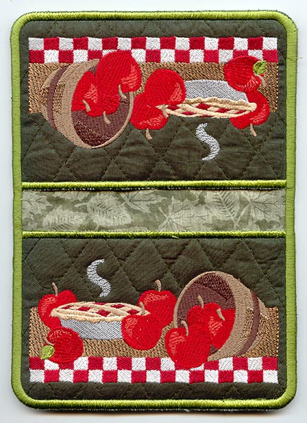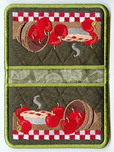 Bring color and personality into your kitchen with pot holders stitched entirely in-the-hoop! Thermal lining and ironing board keep your hands nice and cool, while cotton fabrics add texture and...