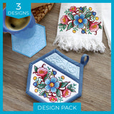 - Use these machine embroidery designs to create gift set and kitchen decor.
