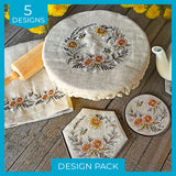 This beautifully coordinated bee & bloom machine embroidery design pack features five intricately detailed designs. Bring sunny garden cheer to the kitchen with matching trivet, coaster, wreath, border and corner designs.