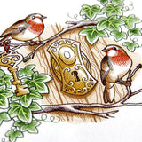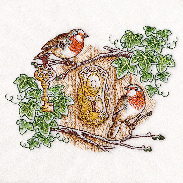 Unlock your creativity as you stitch this machine embroidery design featuring English Robins and ivy on pillows, wall hangings, and more.