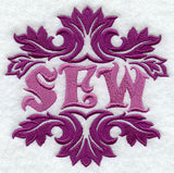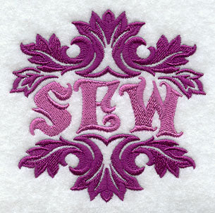Beautiful damask surrounds a simple command: sew! Perfect for sewing bags, totes, and pillows.