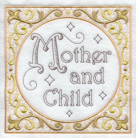 The classic Christmas hymn, 'Silent Night,' is depicted in this ornate story block. Great for quilts, wall hangings, and pillow sets!