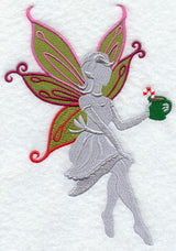 Bright wings and hot chocolate in hand make an elegant silhouette fairy a magical holiday decoration.