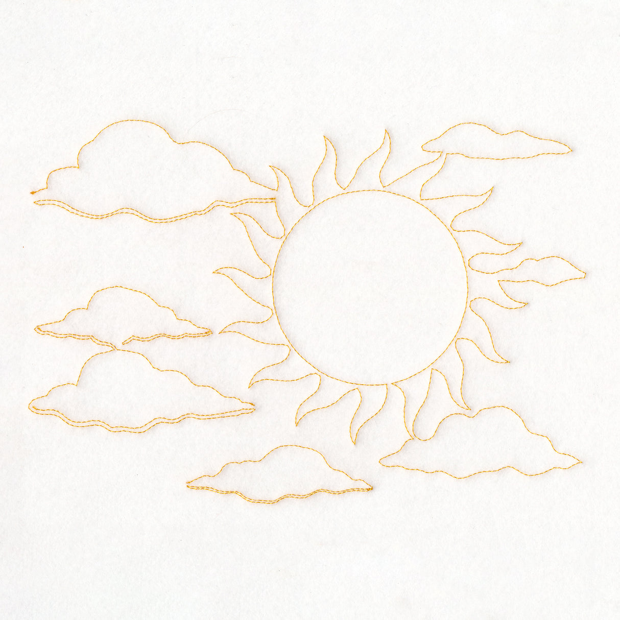 Add some summertime fun to your projects using this sun Edge-to-Edge quilting design. This continuous-line motif features a happy sun and clouds that mimic a free-motion quilting style. Perfect for quilts, sewing-themed projects, or adding crafty charm to any fabric creation.