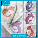 Snuggle up with adorable embossed designs featuring animals hugging.