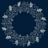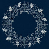 Delicate oak leaves form this beautiful wreath! Create elegant pillows, wall hangings, table linens, and more. This machine embroidery design contains open areas; embroider on solid-colored fabrics for best results.
