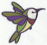 A stained glass hummingbird design, inspired by the Arts and Crafts movement.