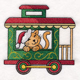 All aboard the storybook Christmas train! You'll be joined along your stitching journey by this festive kitten wearing a Santa hat.
