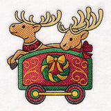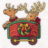 All aboard the storybook Christmas train! You'll be joined along your stitching journey by these festive reindeer.