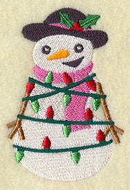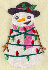 A snow mom is all tangled up in Christmas lights! A de-lightful designs for seasonal towels, tote bags, sweatshirts, and more.