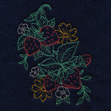 Embrace the light and airy details of summer with a machine embroidery design featuring cosmos flowers and strawberries. Contains open areas throughout. Make tea towels, aprons, table linens, clothing, and more.