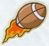Sports fans will go wild for this flaming football design! Fan-tastic on sweatshirts and booster bags.