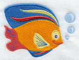 A tropical fish adds splashes of color and fun to beach towels, bath towels, and summery totes.