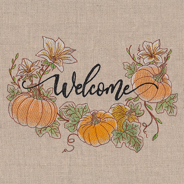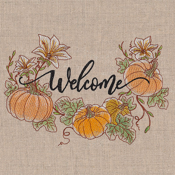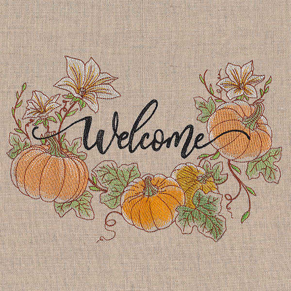 Welcome fall with a beautiful machine embroidery design that is perfect for garden flags, pillows, and more.