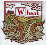 A magnificent autumn scene, in a woodcut style. Bold autumn colors and shapes intersected with sleek satin stitching. Wonderful on totes for the farmer's market!