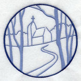 A wonderful winter scene tucked into a circle frame. Add to towels, blankets, and fleece!