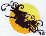 Spooky black shapes curl against a colorful twilight sky in this design perfect for all sorts of haunting Halloween decor.