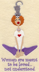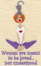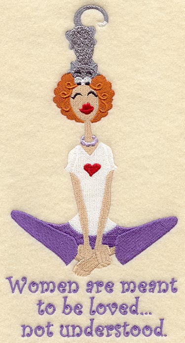 A woman with her best four-legged friend, and the words 'Women are meant to be loved, not understood.'