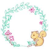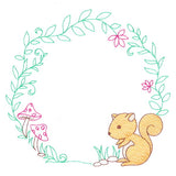 Squirrel linework, Eye, Mushroom stems, Rocks