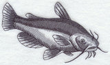 A quick-stitching fish sketch features a yellow bullhead, swimming in a river. Striking on lightweight towels, shirts, gear bags, and more.
